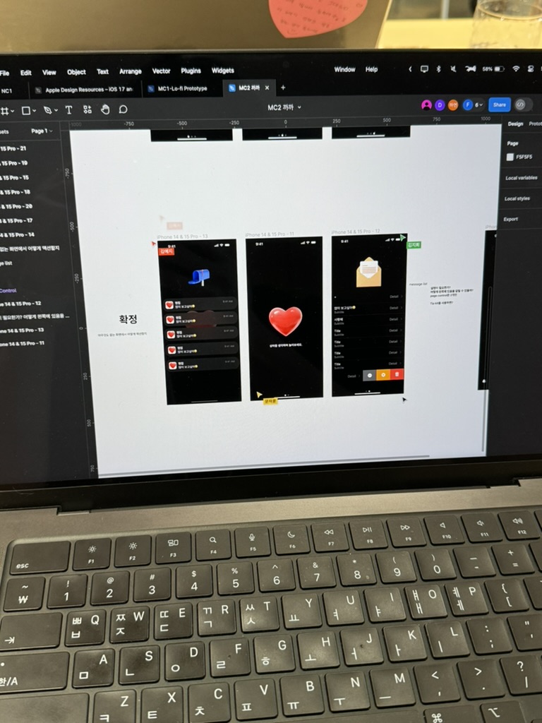 80%정도 완성한 Hi-Fi와 지금까지의 과정을 공유하는 마일스톤이 있었다. 생각보다 정말 많은 피드백을 받아서 감사하기도 했고 동시에 어지러워졌다 ㅋㅋ ㅋ ㅋㅋ 받았던 피드백중 하나는 수신함의 UX적인 부분(왠지 탭하면 어떤 동작이 일어날 것 같다)과 메세지 문구를 정기적으로 수정할 수 있는 방안(메세지당 보낼 수 있는 횟수 제한), 그리고 화면 구성에 관한 피드백(세 개의 view는 스와이프로 이동할 만큼 동등한 계층인가?)이 인상깊었다. 우리팀은 디자인 없이 테크와 도메인으로 이루어진 팀이다보니 UI, UX에 관한 피드백이 필요하기도 했으며, 우리가 가장 해결하기 어려운 문제이기도 했었다.