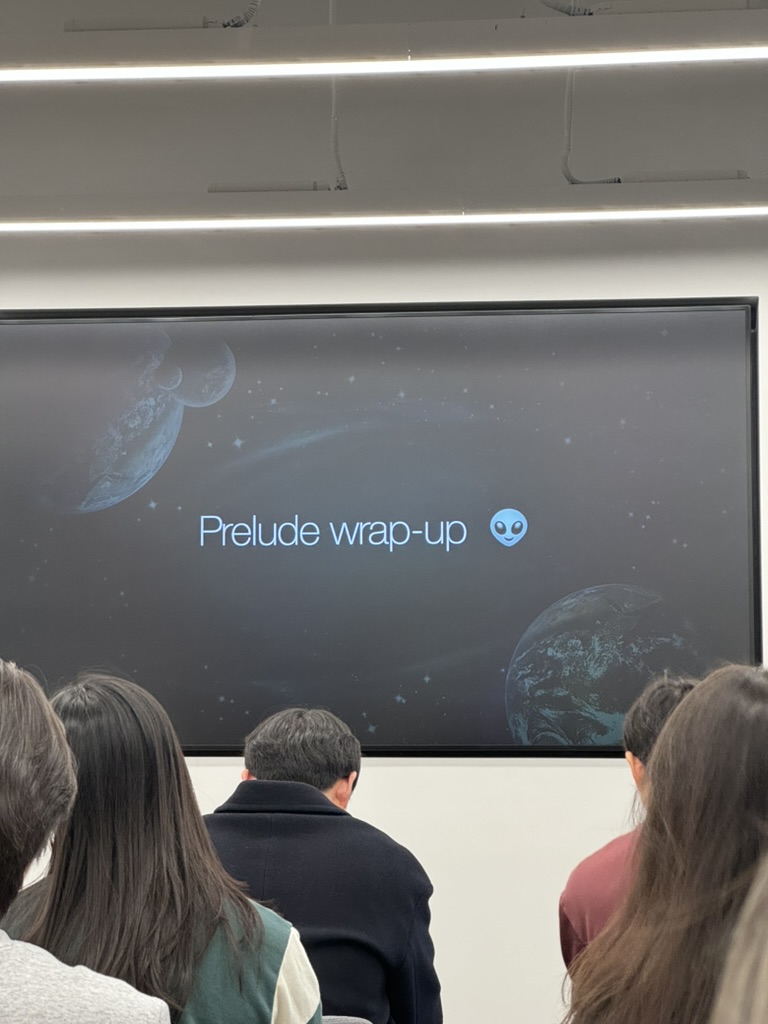 Prelude 마지막 날! 이날을 마지막으로 멘토 소개가 끝났다. 이날은 특별히 오전, 오후 세션 사람들이 한번에 모이는 통합 세션 시간이었어서 100명의 오후 세션분들과 처음 인사를 나눴다. 오전-오후세션간 교류가 많지 않다는 점이 아쉽게 느껴질 정도로 오후 세션에도 좋은 사람들이 많은 것 같다.