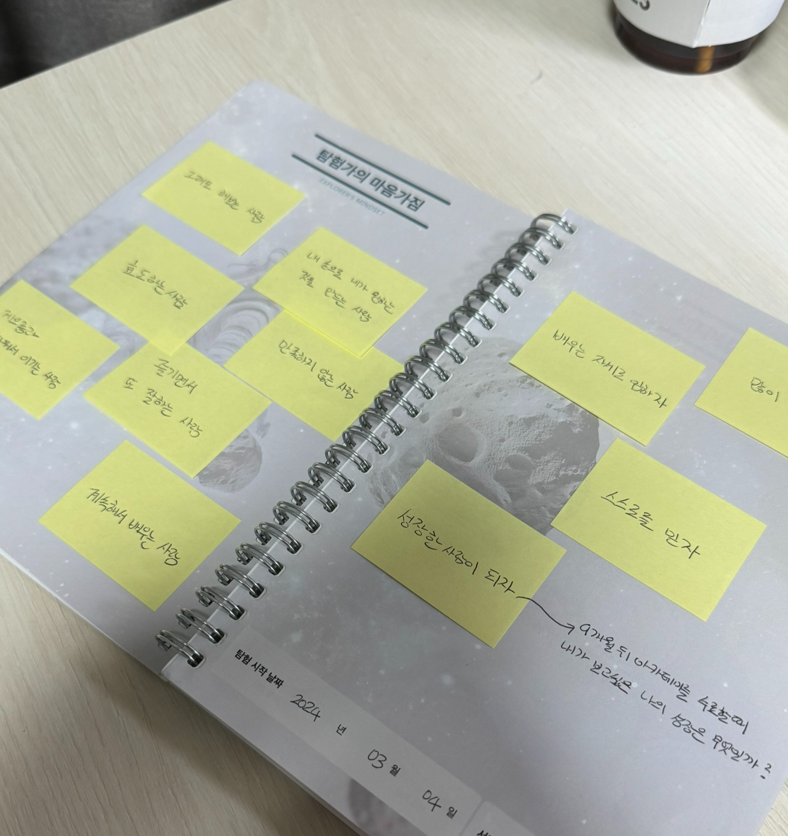 둘째날, 두 번째 멘토소개(보통 6명씩 소개함)와 저널 소개가 있었다. 저널은 아카데미 3기에서 처음으로 도입된 시스템이라고 한다. 하나의 노트인데, 앞으로 챌린지의 기록들이나, 그냥 평소에 떠오르는 생각들을 적을 수 있는 공간이라고 생각하면 된다. 요즘 노션이나 블로그 등 타이핑으로 회고록을 쓰는 경우가 많은데(지금처럼) 손으로 직접 꾹꾹 눌러쓰는게 또다른 자극을 준다고 한 멘토의 말이 생각난다. 그 말에 100% 동의하는 편. 글씨를 좀만 더 이쁘게 썼으면 더 좋았겠지만 ㅜ ㅜ