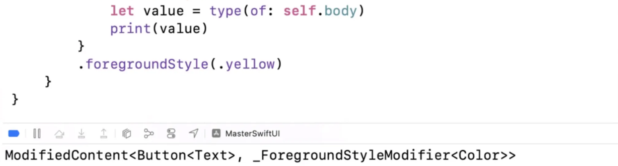 사실 내부적으로는 `ModifiedContent<Button<Text>, _ForegroundStyleModifier<Color>>` 이렇게 긴 타입이 숨겨져 있다는 것인데..