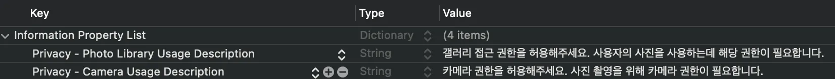 그리고 실제로 Info에서 다음과 같은 Privacy 항목도 있으니까 말이다.